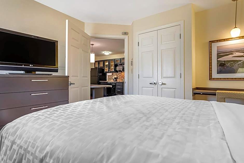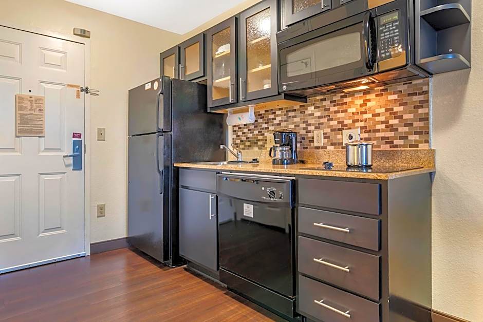 This studio offers a cooking area with microwave, refrigerator, and dishwasher.